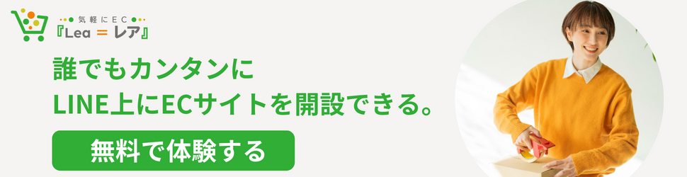 LINE上で手軽にEC販売を行いたいという場合は、LINE上にECサイトを開設できる『Lea = レア』がおすすめです。