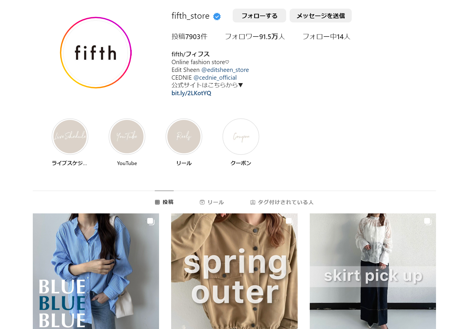 fifthは、女性向けのファッションを中心に販売しているアパレルブランドです。